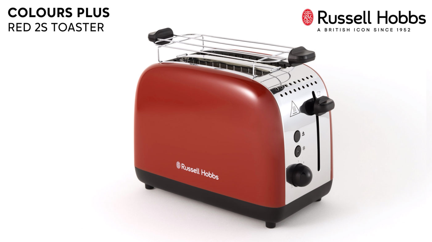 Enjoy the toast you love everyday with the Russell Hobbs Red Colours Plus 2S Toaster. The two extra-long slots allow you to evenly toast longer slices of bread, while the six browning settings put you in control of the colour of your toast, from lightly golden to well done. The lift and look feature is a great way to check on the progress of your toast without stopping the cycle, and you can even toast from frozen, cancel the toasting mid-cycle or reheat toast that’s been left to cool. A handy removable bun warmer keeps pastries and croissants nice and warm. Whether it’s your favourite breakfast or your ‘go to’ snack any time of the day or night, the Russell Hobbs Red Colours Plus 2S Toaster has all the features to make toast just the way you like it.