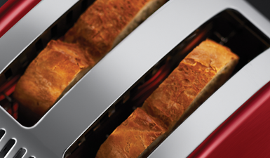 Wide slots with extra lift - ideal for toasting crumpets, tea cakes & thick slices of bread
